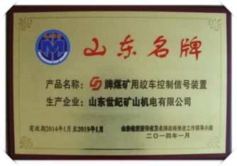 我公司煤矿绞车控制信号装置荣获“山东名牌”荣誉称号